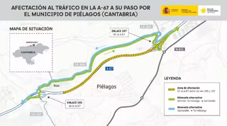 La A-67 se cortará al tráfico la noche del jueves al viernes en Piélagos, entre los kilómetros 195 y 197 - MINISTERIO DE TRANSPORTES