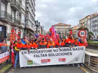 Por otra parte, los trabajadores de Brigdestone han sido protagonista de la manifestación en la que han participado con una gran pancarta que ponía 'En Brigdestone no sobra nadie, faltan soluciones', en el octavo día de huelga que ha llevado a la paralización de la producción de la planta de Puente San Miguel, según los sindicatos, para mostrar su rechazo al ERE planteado por la empresa que conllevaría el despido de 211 personas.