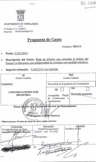 Días más tarde, continúa, los 20 árboles que rodeaban la bolera fueron "brutalmente podados" por una empresa de construcción y con un coste para el erario público de 5.610,53 euros, lo que supone casi 300 euros por árbol.