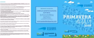 El Instituto Municipal de Deportes (IMD) de Santander tiene abierta hasta el próximo viernes 11 de abril la inscripción en las seis actividades del programa 'Primavera Activa', que incluye campus y cursos semanales para las vacaciones escolares de Semana Santa, del 21 al 25 de abril, y dos cursos de escalada para los meses de mayo y junio.