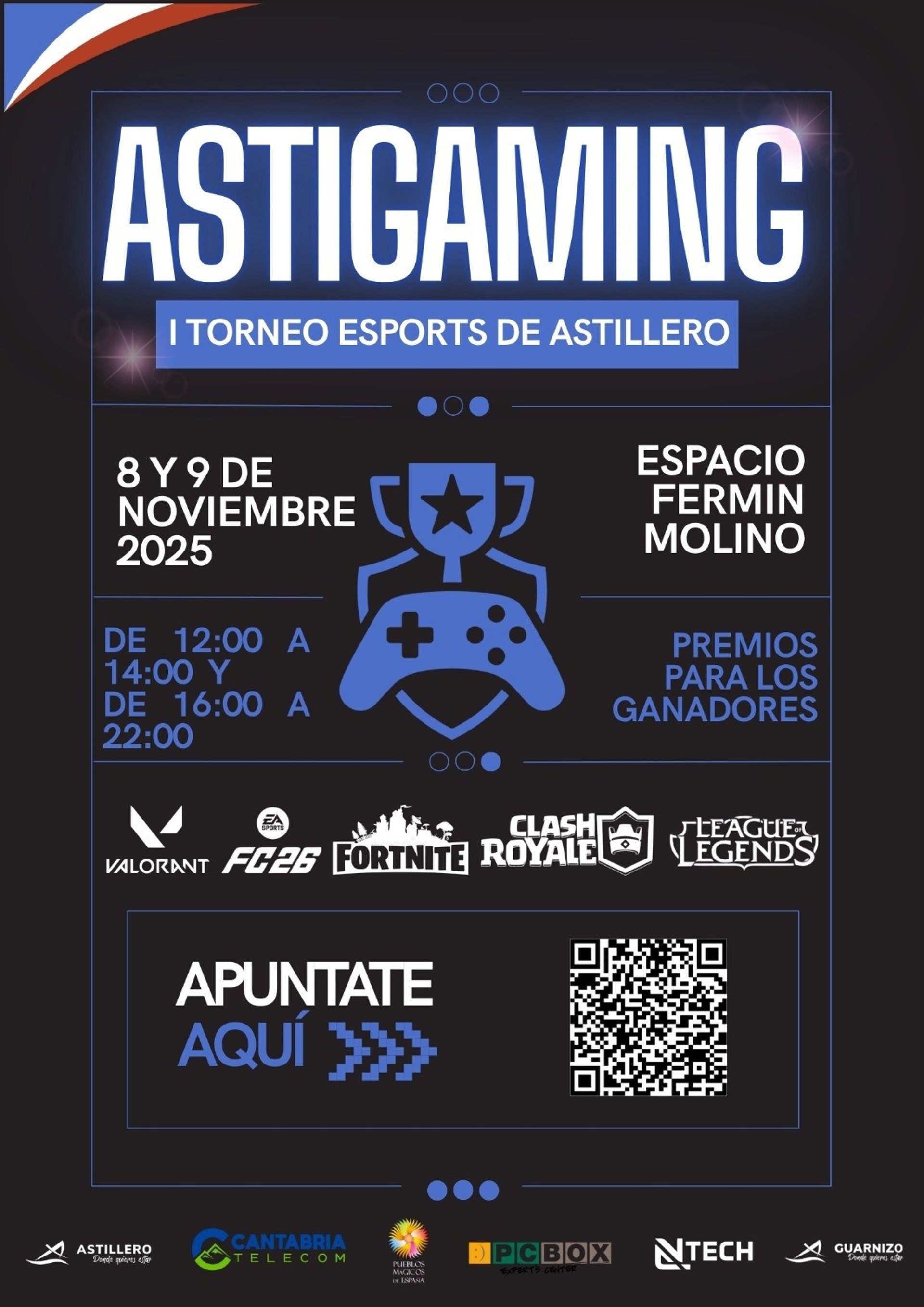 El I Torneo eSports de Astillero se celebrará el próximo fin de semana, 8 y 9 de noviembre, en el Espacio Fermín Molino, con competiciones en juegos como FC 26, Fortnite, League of Legends, Valorant y Clash Royale. Repartirá regalos valorados en cerca de 800 euros.