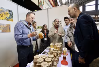 Tras saludar a cada uno de los productores y comprobar la *"excelente" calidad de las mieles expuestas, el consejero ha abogado por poner en valor el sector apícola con acciones como este tipo de ferias, capaces, a su juicio, de generar otras sinergias, como son el reforzamiento de lo artesano, lo rural y lo natural "como plus de calidad".