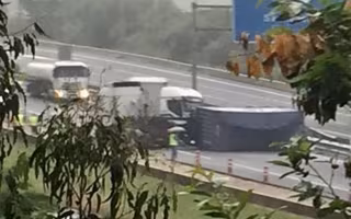 Un accidente de tráfico en el que se han visto implicados dos camiones, uno de los cuales ha volcado en mitad de la carretera, ha obligado a cortar el tráfico en la autovía A-8, en el punto kilométrico 161, en la bajada del viaducto de Oriñón, dirección Bilbao.
