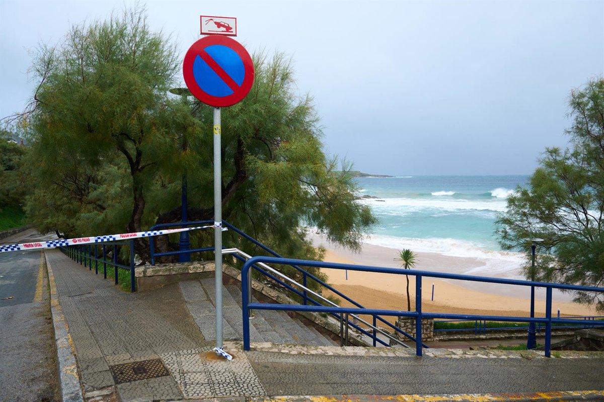 Una playa de Santander cerrada al público por avisos meteorológicos. - Juanma Serrano - Europa Press
