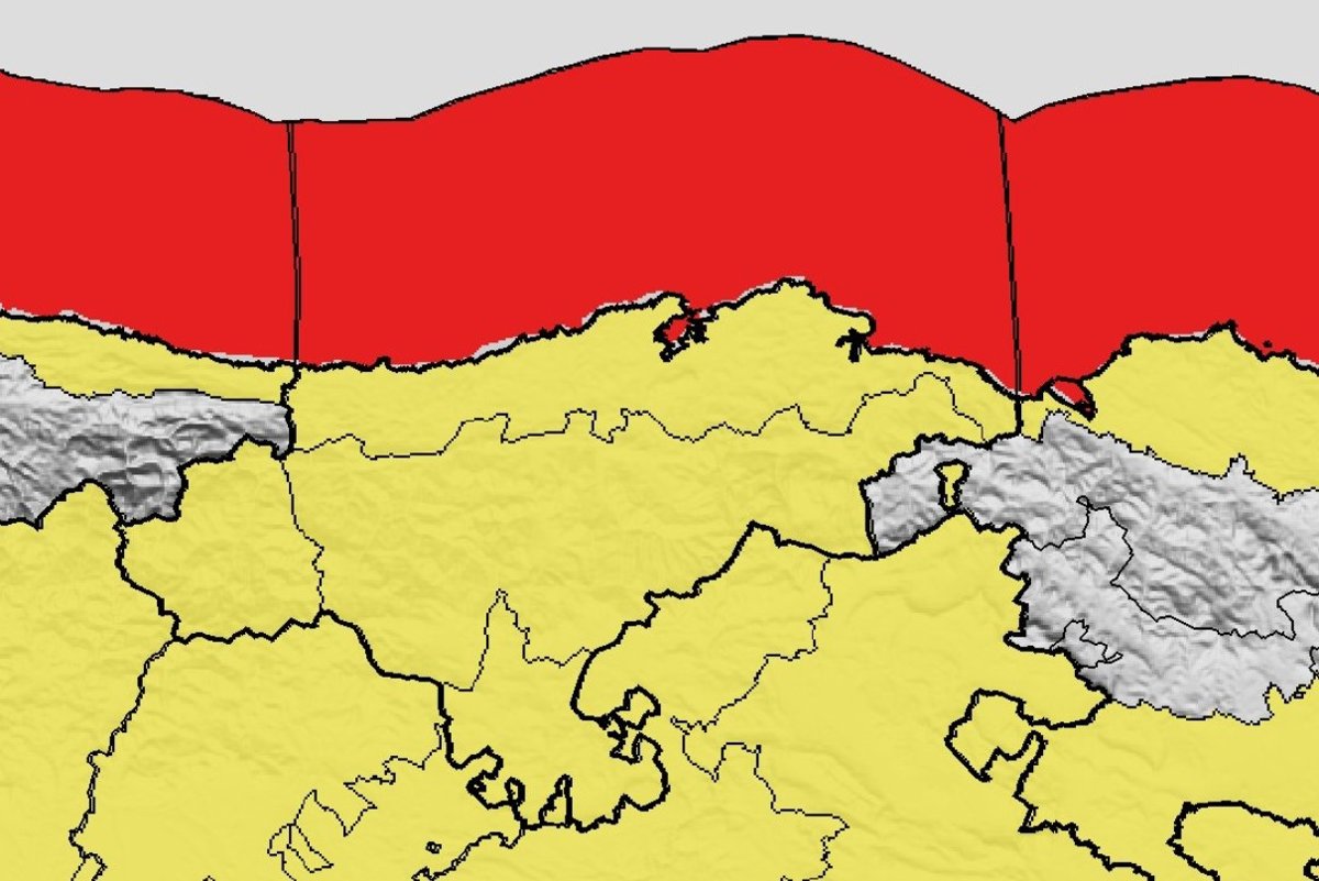 Ese aviso se extenderá hasta las 12.00 horas de este domingo, cuando se ampliará la alerta a roja en todo el litoral por peligro extraordinario a causa de una mar combinada del oeste o noroeste de 8 a 10 metros y viento del oeste de 62 a 74 km/h (fuerza 8) a 75 a 88 km/h (fuerza 9).