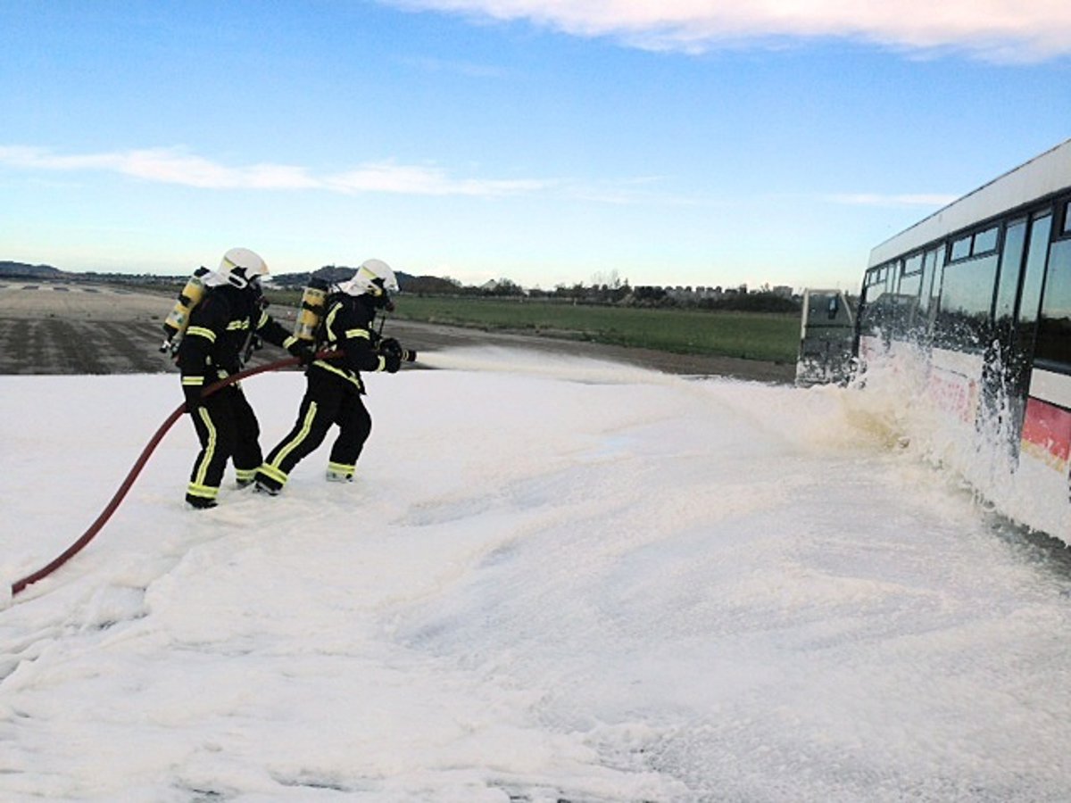 Los bomberos se dirigen al lugar del accidente, para su evaluación e intervención inmediata, actuando en la parte del avión que se encuentra en tierra y alertando que otra parte del fuselaje ha caído al mar. Se da aviso para que se activen los servicios de salvamento marítimo (112, SASEMAR y Guardia Civil del Mar) y se desarrolla la simulación del accidente aéreo.