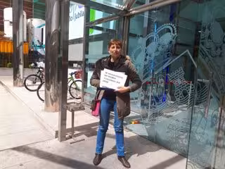 Silvia Martínez Mora, vecina de Los Corrales de 47 años afectada por una enfermedad rara, 'se planta' cada día de 8 a 3 en la puerta del Gobierno de Cantabria para exigir a sus responsables que la escuchen y atiendan las reclamaciones que ha presentado en los últimos cuatro años y que asegura que no ha obtenido respuesta.