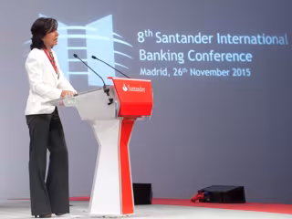 "Si a ello unimos los bajos tipos de interés y el débil crecimiento de las economías desarrolladas, resulta todo un reto para el sector", ha apuntado la presidenta del Santander, para después matizar que la "buena noticia" pasa por que se está "más cerca del final que del principio" de este ciclo que empezó con la crisis financiera.