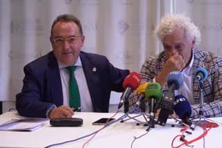 José Luis Yzuel y Ángel Cuevas, en la rueda de prensa en la que Cuevas anuncia que deja la presidencia d ela AEHC - AEHC