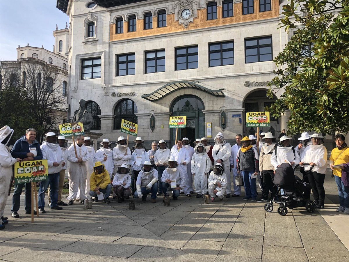 Apicultores cántabros se han concentrado esta mañana en la plaza Alfonso XIII de Santander para pedir un etiquetado "claro" de la miel en el que se indiquen los países de origen y los porcentajes de cada componente en el caso de las mezclas, así como más controles e inspecciones "menos laxas" en las fronteras.