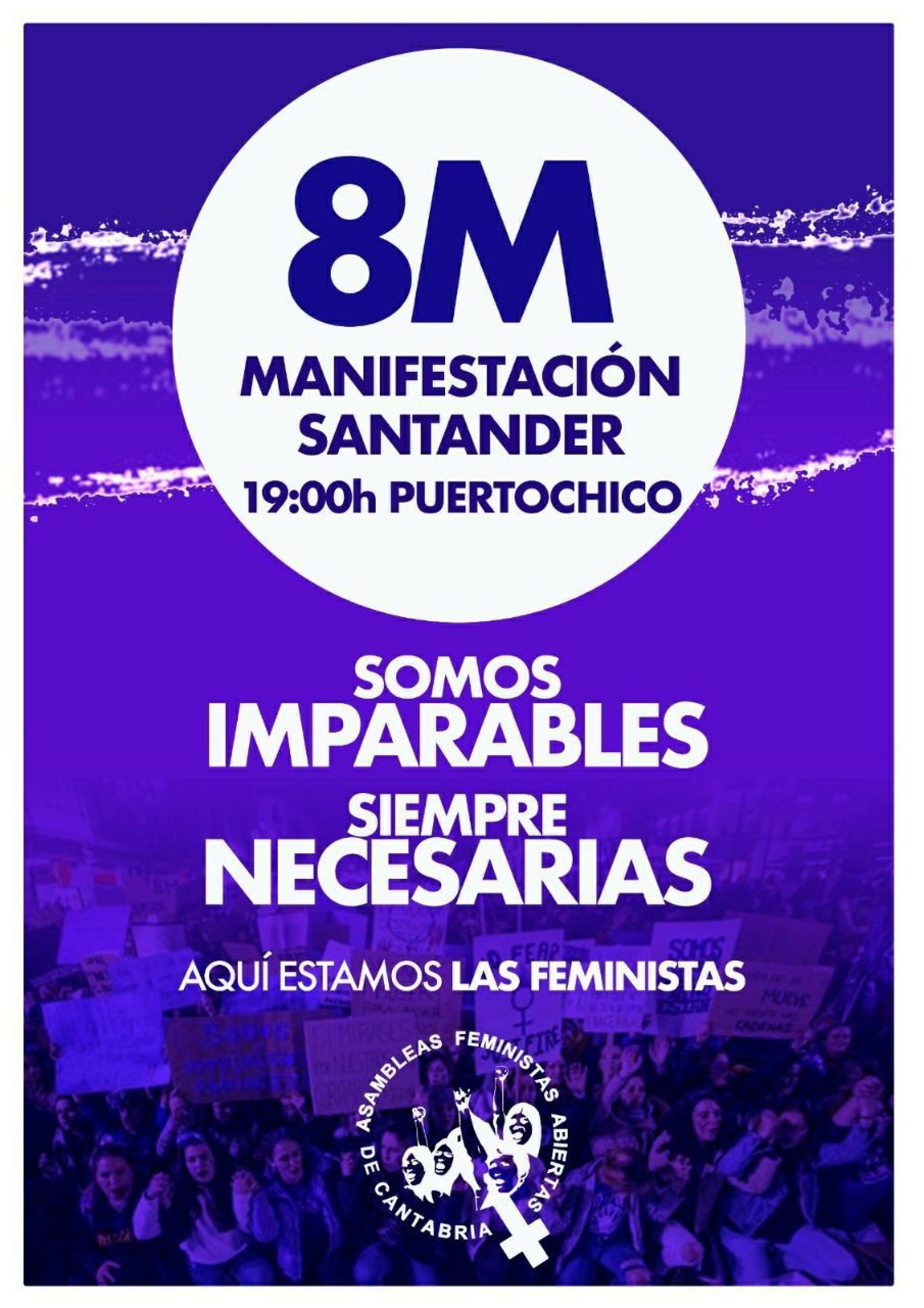 Las Asambleas Feministas Abiertas de Cantabria han llamado a la población a secundar la manifestación que, con motivo del 8 de marzo, partirá a las 19.00 horas desde Puertochico y llegará hasta el Ayuntamiento de Santander bajo el lema 'Somos imparables, siempre necesarias. Aquí estamos las feministas'.
