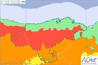 Por su parte, el litoral cántabro permanecerá en aviso naranja por fenómenos costeros adversos entre las 00 y las 21 horas del lunes. Se prevé viento de oeste fuerza 7, ocasionalmente 8, y mar combinada del noroeste con olas de 5 a 6 metros.