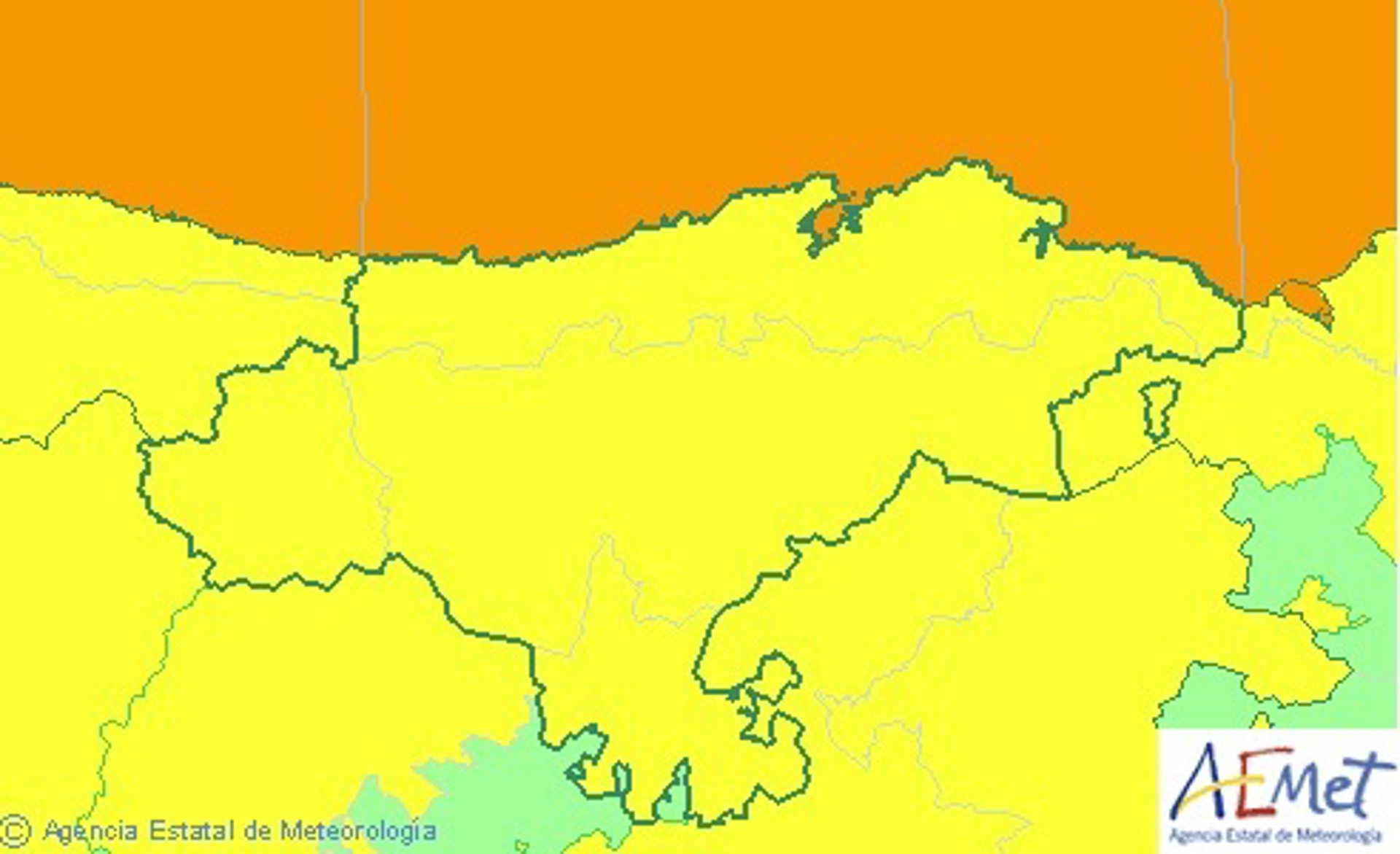Todos los avisos activos en Cantabria este jueves incrementarán su nivel de cara al viernes, cuando se prevé que la borrasca atlántica que se aproxima a la Península atraviese la comunidad autónoma.