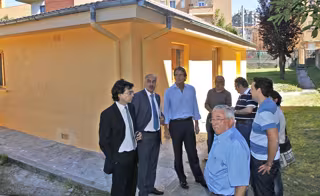 El alcalde de Santander, Iñigo de la Serna, junto al concejal de Barrios, Santiago Recio, y miembros de la Junta Directiva de la Asociación de Vecinos han visitado este viernes las obras de rehabilitación y acondicionamiento que está llevando a cabo el Ayuntamiento en el inmueble, que es propiedad de RENFE y desde hace años se encontraba en estado de abandono.