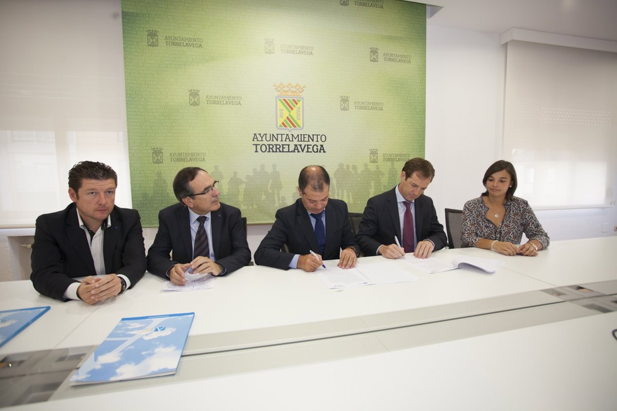 El convenio se ha firmado en el Ayuntamiento de Torrelavega con la presencia del alcalde de la ciudad, José Manuel Cruz Viadero, el concejal de Deportes, Jesús Sánchez, y la directora general de Deportes del Gobierno de Cantabria, Zara Ursuguía.