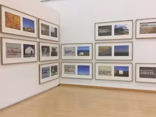 Por su parte, Mejía, ha añadido que primero trabajó el tema de las bibliotecas, en sus creaciones de en 1989, 2008 y 2009, y a continuación su obra derivó hacia los poemas visuales, tal y como muestra una de las piezas de la exposición formada por libros blancos con frases en inglés.