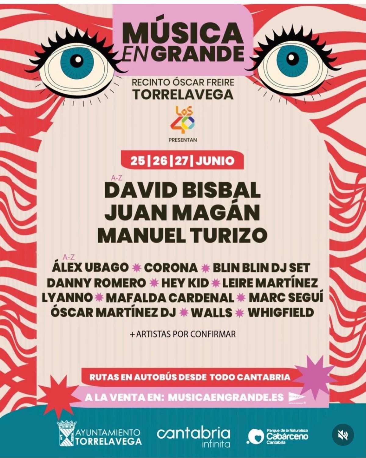 Los cantantes David Bisbal, Manuel Turizo y Juan Magán encabezan el primer anuncio del festival 'Música en Grande 2026', que se celebrará en el recinto Óscar Freire de Torrelavega los días 25, 26 y 27 de junio.