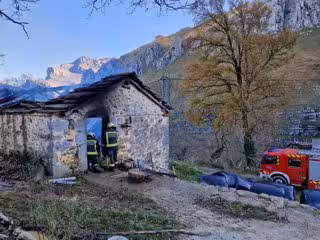 Bomberos del 112 Cantabria han intervenido este domingo en un incendio declarado en una cabaña ganadera en San Roque de Riomiera, en el barrio de Pedrosa.