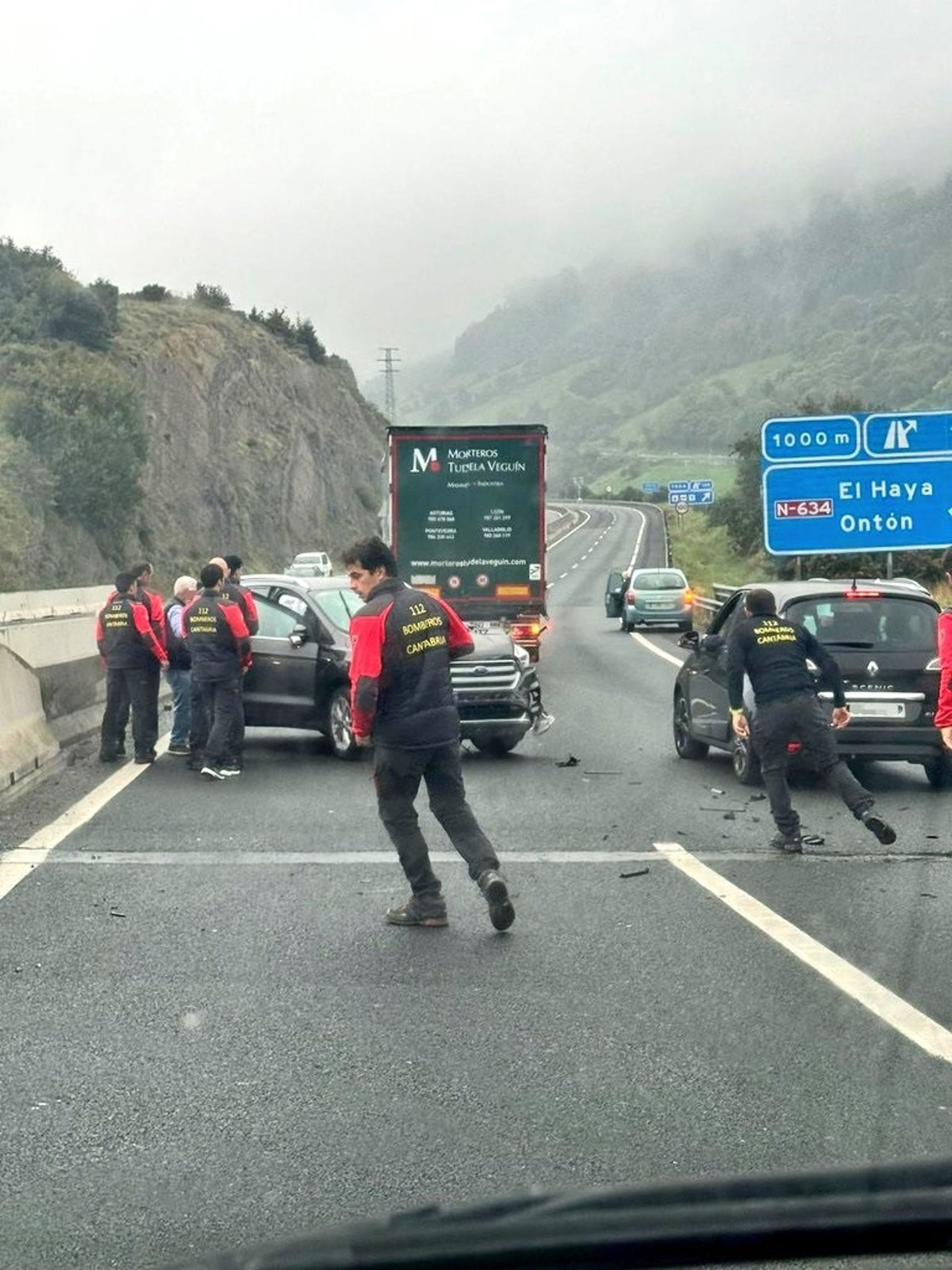 Bomberos del Gobierno de Cantabria que se encontraban de viaje a Valencia para hacer el relevo de los efectivos destacados en la comunidad valenciana tras la DANA, han asistido este domingo un accidente de tráfico en la autovía A8, a la altura de Ontón.