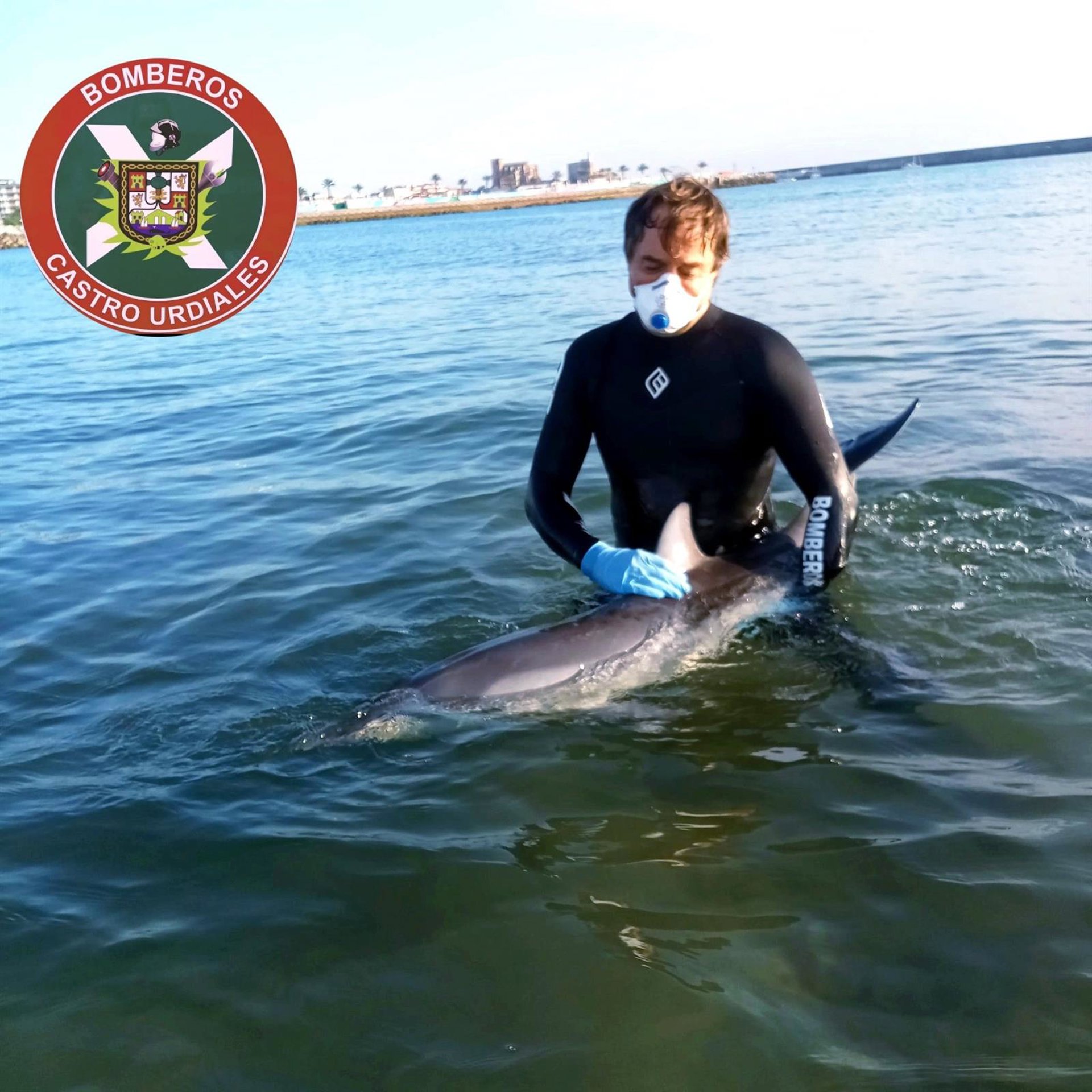 Tras el aviso, se movilizó a los Bomberos de Castro Urdiales y al resto de recursos del Gobierno de Cantabria y, mientras se trasladaban hasta el lugar, un ciudadano mantuvo al delfín en el agua, ha informado el 112 y Bomberos de Castro Urdiales en su cuenta de Twitter.