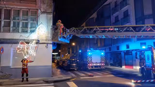 Bomberos de Cantabria del parque de Laredo han retirado de madrugada el alumbrado navideño en una calle de Santoña que se había descolgado por el viento.