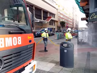 Los bomberos santanderinos se están coordinando con la agrupación local de Protección Civil, que desde la pasada semana ha centrado las labores de limpieza y desinfección en los accesos y entornos de las residencias de mayores y centros sociales, accesos a las sedes de servicios esenciales (como las del 112 y 061 que se limpian a diario), marquesinas e intercambiadores, accesos a establecimientos de alimentación, farmacias y centros de salud.