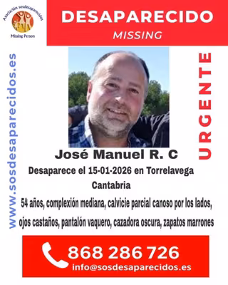 El pedáneo, José Manuel Real, de 54 años, desapareció el pasado jueves 15 en Torrelavega y tanto el Ayuntamiento de Miengo como SOS Desparecidos han pedido colaboración para localizarlo.