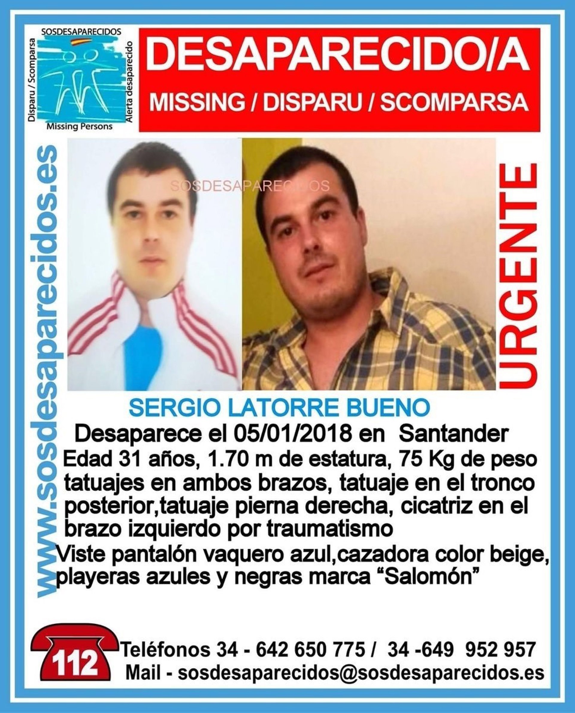 De acuerdo con dicho mensaje, el chico, que tiene varios tatuajes, vestía pantalón vaquero azul, cazadora color beige y playeras azules y negras en el momento de la desaparición.