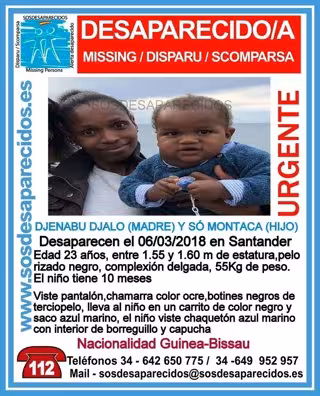 La madre se llama Djenabu Djalo y el nombre de su hijo es Só Montaca. Ella tiene 23 años, mide entre 1.55 y 1.60 metros de altura y pesa unos 55 kilos, por lo que es de complexión delgada, y tiene el pelo rizado de color negro.