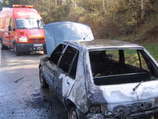 El coche, un Peugeot 205, se ha incendiado repentinamente mientras circulaba. Sus ocupantes han tenido tiempo suficiente para abandonar el vehículo, pero no han podido sofocar las llamas.