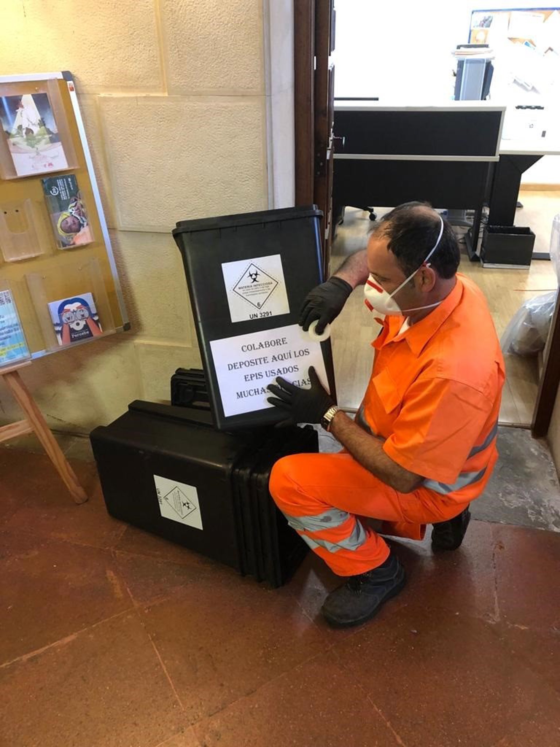 El Ayuntamiento de Camargo está procediendo a la instalación de contenedores en varios centros de trabajo para que los empleados puedan depositar en ellos específicamente los equipos de protección individual (EPI) que hayan utilizado.
