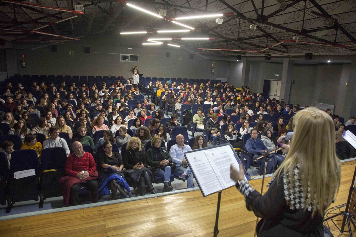 El salón de actos del Centro Cultural La Vidriera ha acogido este lunes un encuentro en el que estudiantes de varios centros del municipio han expresado su rechazo a la violencia de género a través de una serie de representaciones artísticas y propuestas creativas, coincidiendo con la celebración del Día Internacional de la Eliminación de la Violencia contra la Mujer.