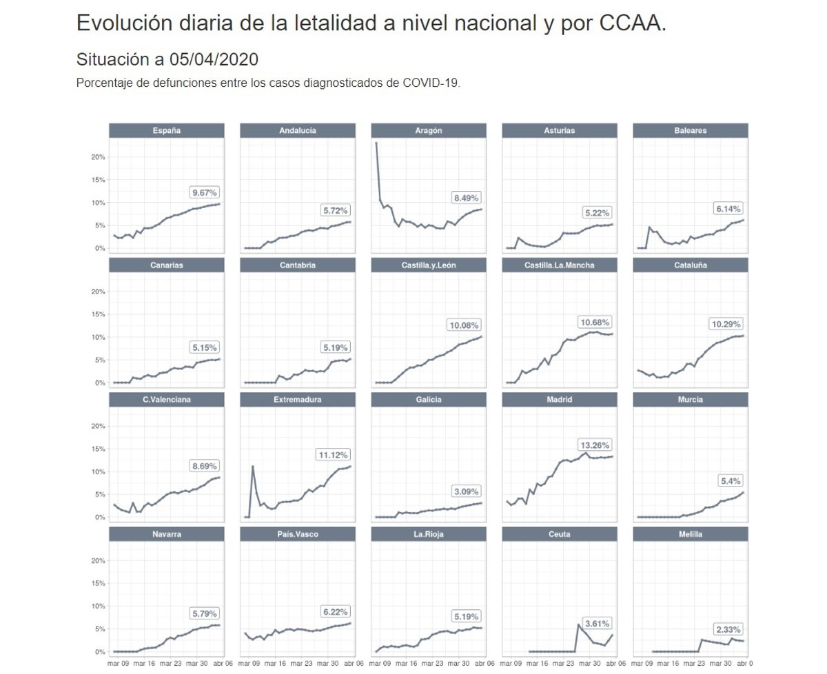 Datos de la evolución de la letalidad del coronavirus en las CCAA - INSTITUTO DE SALUD CARLOS III/MINISTERIO DE SANIDA