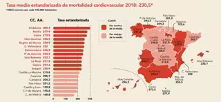 Infografía de comunidades autónomas sobre mortalidad cardiovascular con datos de 2018 del Instituto Nacional de Estadística (INE) - SEC/FEC