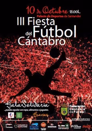 La Federación Cántabra de Fútbol celebrará este sábado, 10 de octubre, en el Palacio de Deportes de Santander la III Fiesta del Fútbol y Fútbol Sala de Cantabria en la que se premiará a los mejores clubes y equipos de la región durante la temporada 2014-15 y habrá una recogida de alimentos no perecederos, ropa y juguetes que se entregarán posteriormente a la Cocina Económica y a Asociación Nuevo Futuro.