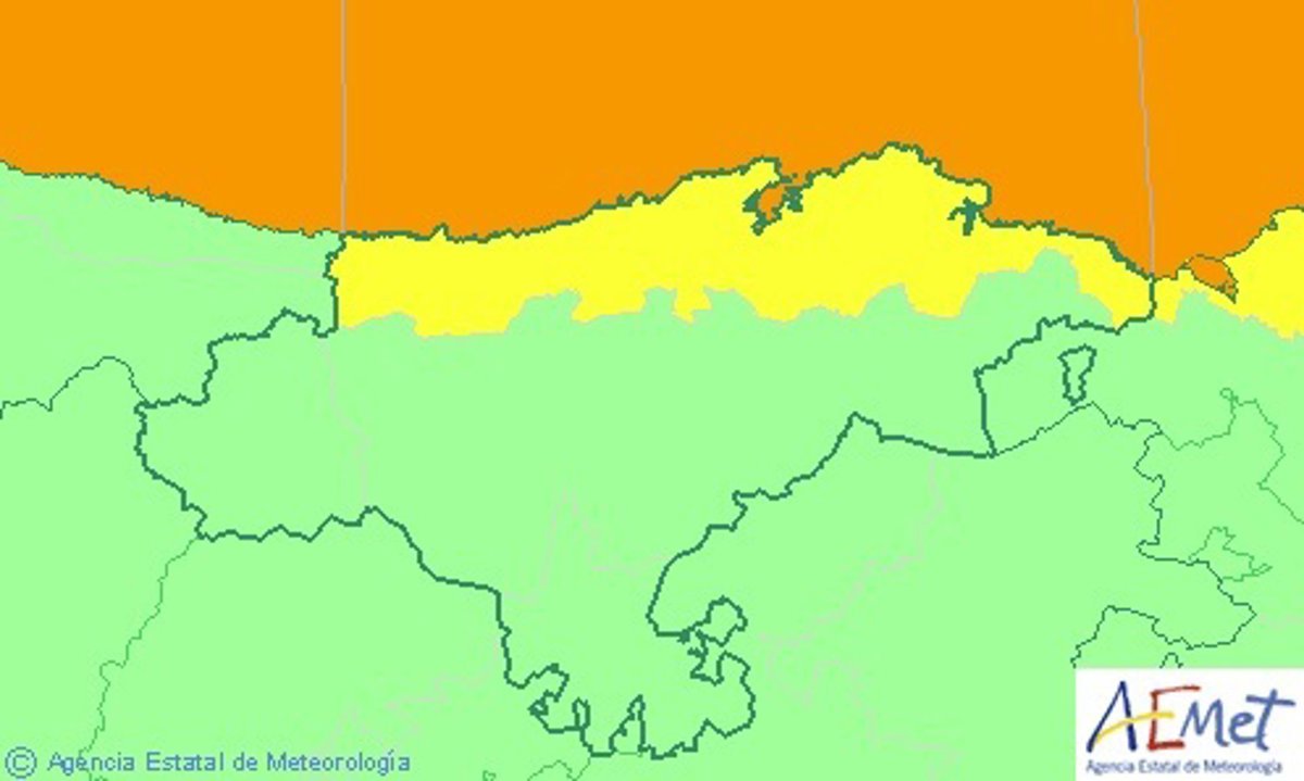 Mapa de avisos activos en Cantabria este martes - AEMET