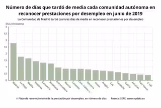 Tiempo empleado en el reconocimiento de prestaciones por desempleo por CCAA (junio 2019) - EP DATA