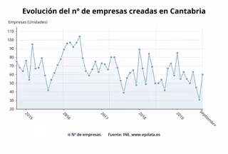 Según datos del Instituto Nacional de Estadística (INE), publicados este viernes y recogidos por Europa Press, en Cantabria se crearon en el noveno mes del año 60 empresas y se disolvieron 25.