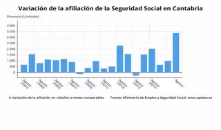 Variación de la afiliación a la Seguridad Social en Cantabria - EPDATA
