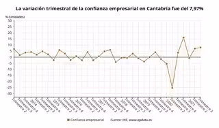 El Índice de Confianza Empresarial Armonizado (ICEA), cuya publicación corresponde al Instituto Nacional de Estadística (INE), ha subido un 8% en Cantabria en el tercer trimestre de este año respecto al segundo, el menor incremento de las comunidades.