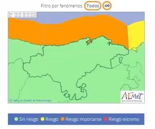 Cantabria estará este jueves, 28 de noviembre, en aviso por fenómenos costeros adversos y en algunos momentos de la jornada se llegará a nivel naranja (riesgo importante), según la Agencia Estatal de Meteorología (AEMET).