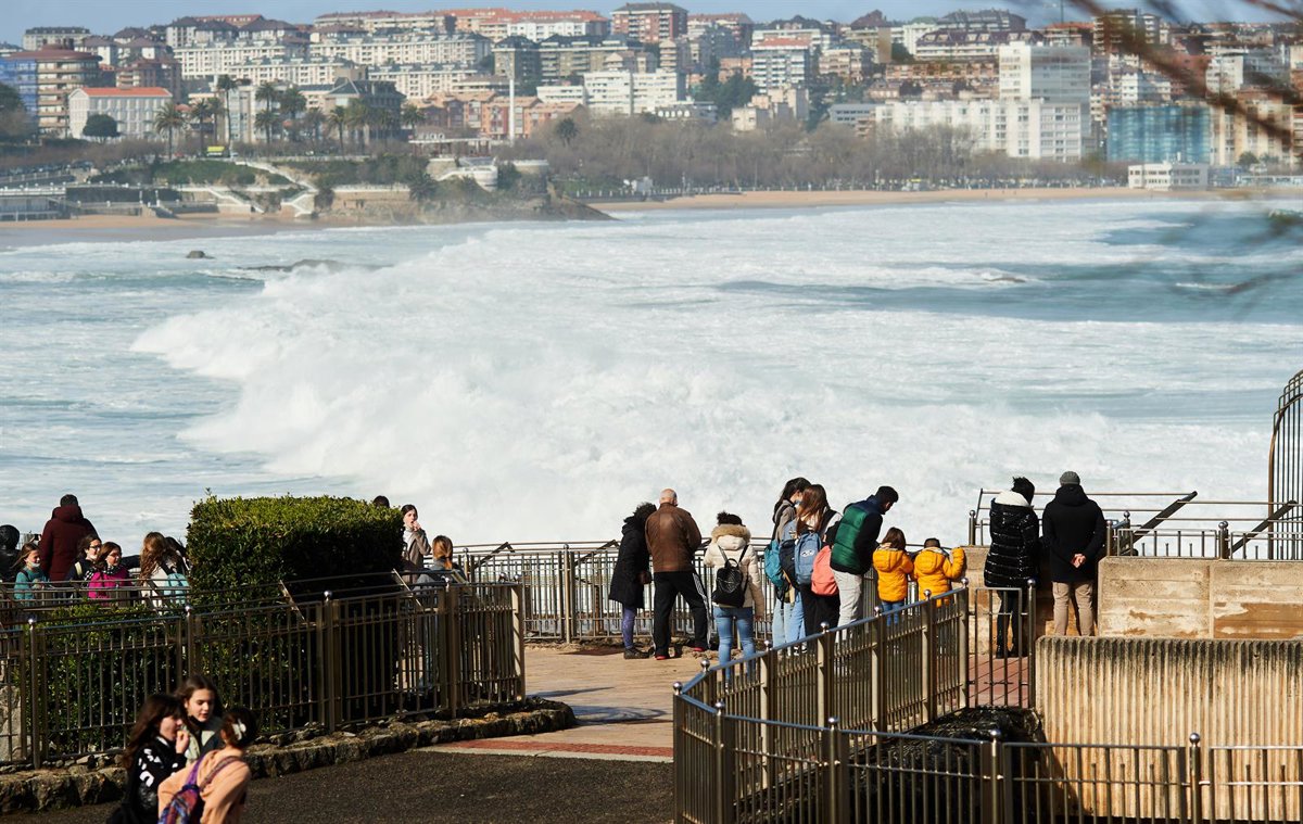 Archivo - Un grupo de personas observa el fuerte oleaje que se aproxima al paseo marítimo, a 25 de febrero de 2022, en Santander, Cantabria (España).- Archivo - Juan Manuel Serrano Arce - Europa Press - Archivo