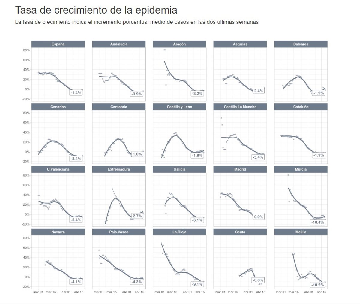 Tasa de crecimiento de la epidemia de COVID-19 por CCAA (publicados el 20 de abril) - INSTITUTO DE SALUD CARLOS III