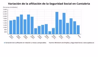 La Seguridad Social ganó 1.194 afiliados en Cantabria en mayo respecto al mes anterior, un 0,57%, en línea con la media nacional (0,53%), según ha informado este martes el Ministerio de Inclusión, Seguridad Social y Migraciones.