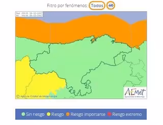 Pasado el aviso naranja se volverá de nuevo al amarillo, entre las 21.00 del viernes y las 00.00 horas del sábado, 16 de diciembre.