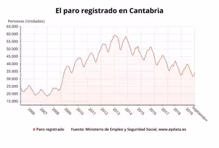 Sin embargo, hubo 321 parados menos en Cantabria, un -0,9%, en relación con septiembre de 2018, tres puntos menos que el descenso medio nacional (-3,83%).