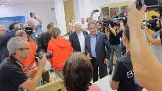 El presidente de Cantabria, Miguel Ángel Revilla, ha recibido este jueves a 25 personas sin hogar procedente de Madrid, que realizan una excursión de dos días a Santander encabezadas por el Padre Ángel para disfrutar de un día de playa y de diversas actividades, gracias a la iniciativa de la iglesia de San Antón.