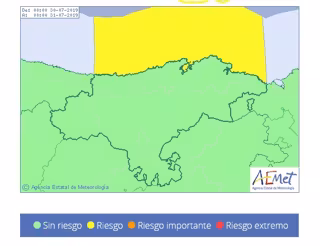 Concretamente, el riesgo, de nivel amarillo, por fenómenos costeros adversos se ha activado a las 20.00 horas de este lunes y persistirá hasta las 7.00 del martes, día en que la comunidad autónoma será la única con algún tipo de alerta activada por fenómeno meteorológico adverso.
