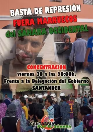 Cantabria por el Sáhara ha convocado una nueva concentración este viernes, a las 20.00 horas, frente a la Delegación del Gobierno en Cantabria para expresar la "condena y repulsa" por el asesinato de Maichan Mohamed Lahbib, un joven saharaui de 29 años, que ha muerto por un "paliza" que le han propinado un grupo de colonos marroquíes en la ciudad ocupada de Dajla, en el Sáhara Occidental.