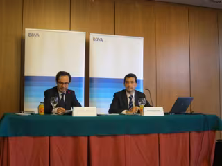 Doménech ha presentado este martes en rueda de prensa, acompañado del director territorial Norte de BBVA, Jorge Sáenz-Azcúnaga, para el informe sobre la economía cántabra 'Situación Cantabria', elaborado por la entidad financiera, según el cual, un mayor ajuste fiscal y la caída de las exportaciones explican una recesión más intensa en Cantbria que en el resto de España en 2013.